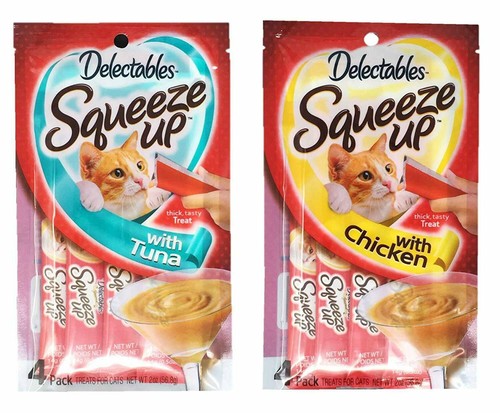 These cat treat snacks can be fed to cats by hand contents can be squeezed into a bowl or can be used as a topper on your cats regular food not included more ADD SOME VARIETY TO YOUR CATS LIFE. FREE Shipping on orders over 25 shipped by Amazon Delectables Hartz Squeeze Up Cat Treats Variety 4 Pouch Bundle of 2 Flavors. INABA Churu Cat Treats Grain-Free Lickable Squeezable Creamy Purée Cat TreatTopper with Vitamin E Taurine 05 Ounces Each Tube 20 Tubes Tuna Variety S3038 Hartz Delectables Squeeze Up Interactive Lickable Wet Cat Treats for Adult Senior Cats Variety Tub 48 Count S4257 Product information Technical Details.